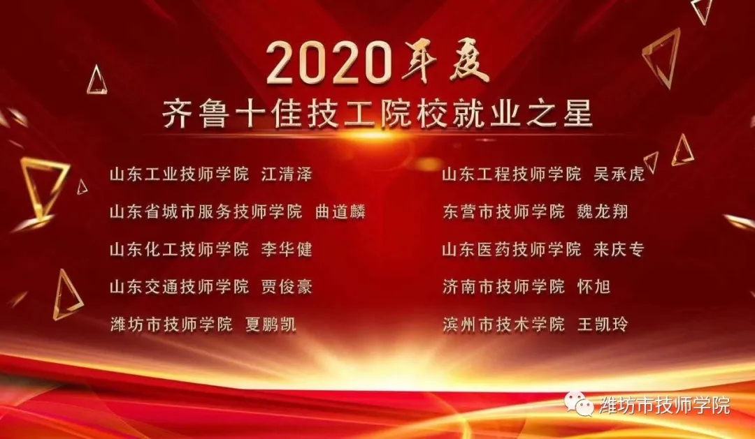 在8月22日舉行的第五屆山東省技工教育成果展上,濰坊市技師學(xué)院獲評(píng)“2020年度齊魯最具就業(yè)競(jìng)爭(zhēng)力十佳技工院!保@是學(xué)院繼獲評(píng)“改革開放40周年‘山東省最具就業(yè)競(jìng)爭(zhēng)力十大技工院!狈Q號(hào)后就業(yè)領(lǐng)域獲得的又一殊榮。同時(shí),濰坊市技師學(xué)院學(xué)生夏鵬凱獲評(píng)“2020年度齊魯十佳技工院校就業(yè)之星”。