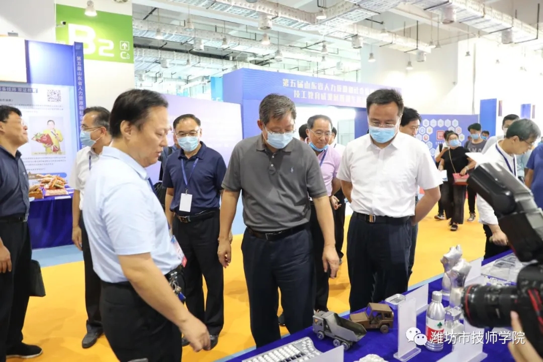 第五屆山東省技工教育成果展由省人社廳、齊魯晚報(bào)主辦,旨在推動(dòng)形成“學(xué)一技之長(zhǎng),做大國(guó)工匠”輿論氛圍,弘揚(yáng)工匠精神,為山東省新舊動(dòng)能轉(zhuǎn)換提供更多高技能人才支撐。活動(dòng)知名度高、影響力強(qiáng),主會(huì)場(chǎng)設(shè)在濟(jì)南高新國(guó)際會(huì)展中心,并通過網(wǎng)絡(luò)進(jìn)行直播。山東省人力資源和社會(huì)保障廳副廳長(zhǎng)侯復(fù)東在頒獎(jiǎng)儀式上為濰坊市技師學(xué)院頒獎(jiǎng),并到學(xué)院展區(qū)現(xiàn)場(chǎng)指導(dǎo)。學(xué)院副院長(zhǎng)劉華堂帶領(lǐng)相關(guān)處系師生20余人參加現(xiàn)場(chǎng)展示,在直播室通過直播介紹濰坊市技師學(xué)院育人特色及招生就業(yè)情況。