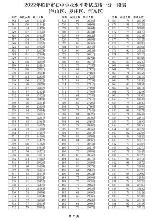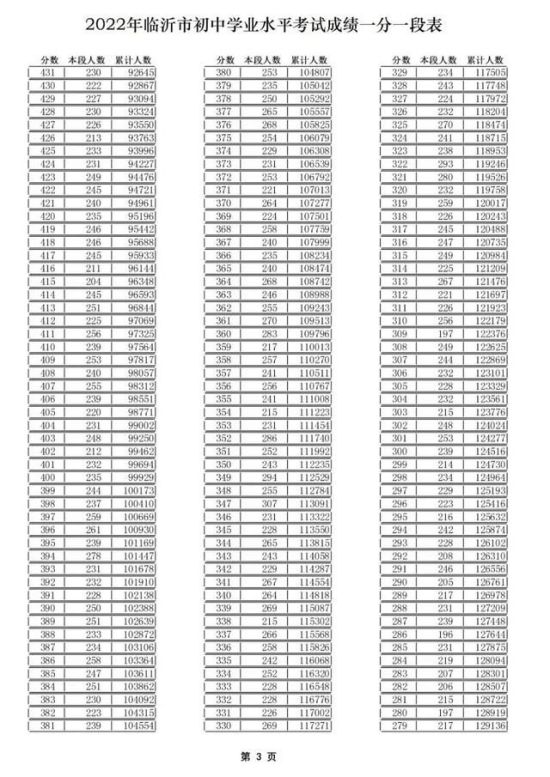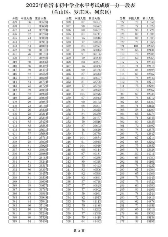 二、2022年臨沂市(蘭山區(qū)、羅莊區(qū)、河?xùn)|區(qū))中考成績(jī)一分一段表