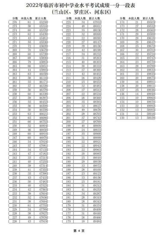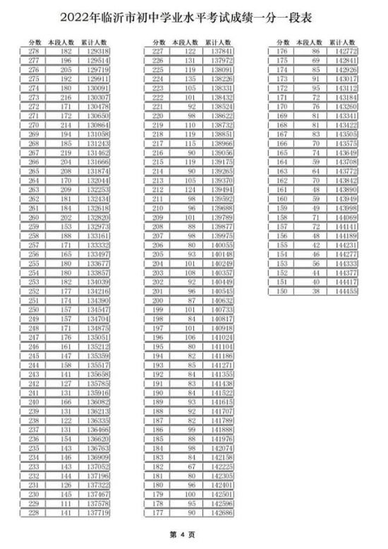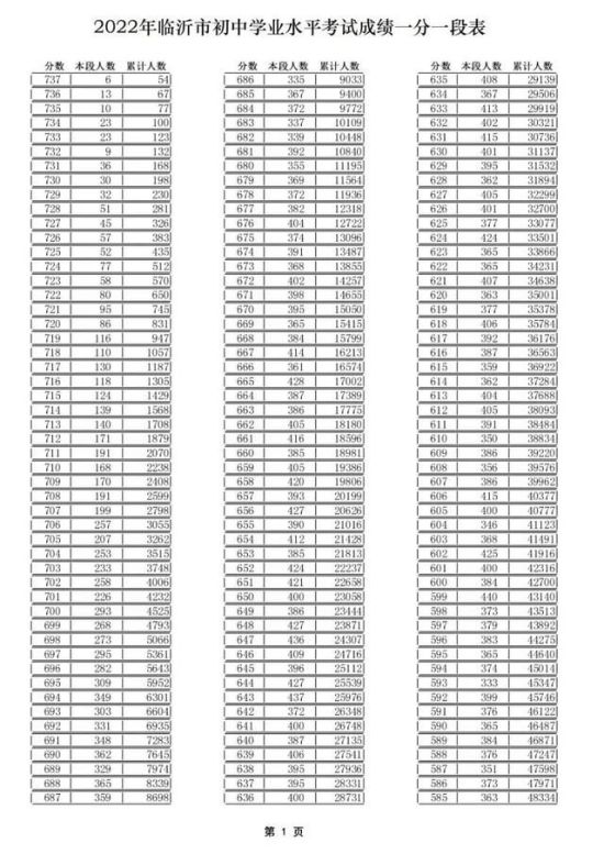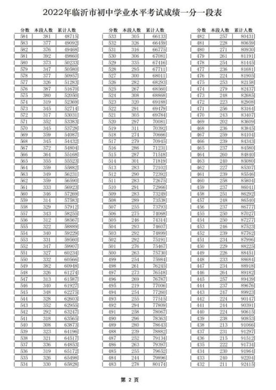 一、2022年臨沂全市中考成績(jī)一分一段表