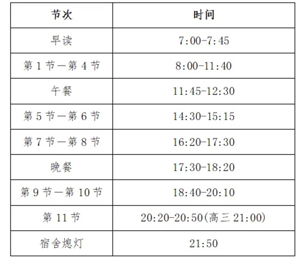 五年制高職教育、三年中職第6節(jié)課后進行實訓技能練習或社團活動。3+4中職本科、職教高考進行7-8節(jié)課程。