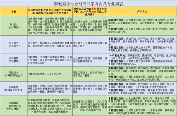 (2)職教高考班生的專業(yè)均可通過參加單招和職教高考升入本科專業(yè)院校。