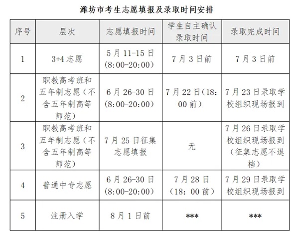 濰坊市的考生均需在6月26日-30日在濰坊市高中段招生考試平臺http://218.59.142.109:3009/wfzsks/front/indexjsp 填報志愿、統(tǒng)一錄取。