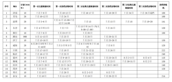 (2)省內其他地市的錄取及安排(參考2023年) 資格線是指達到此分數有資格報考。具體志愿填報錄取時間以2024年各地招生考試院公布時間為準。