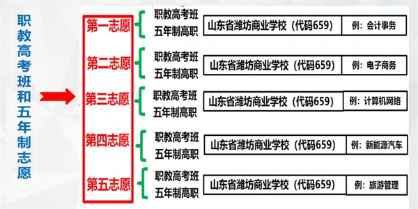 答:所有考生可先在山東省濰坊商業(yè)學校網站進行預報名。預報名后,學校會根據學生的報名情況,對考生進行志愿填報指導和教育局指定網站填報志愿提醒。
