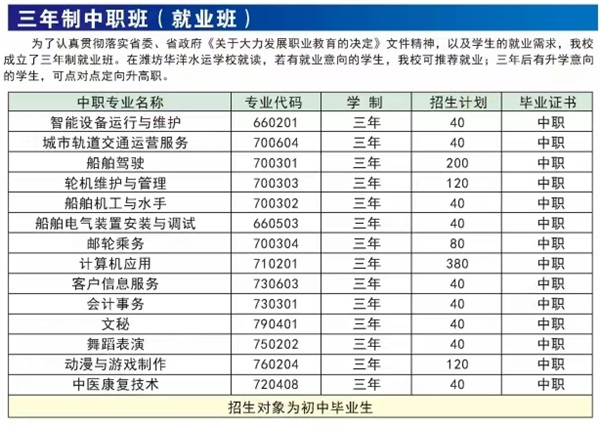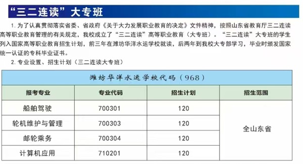 七、濰坊華洋水運學(xué)校招生計劃