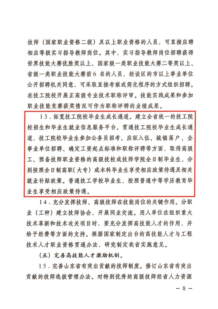 根據(jù)山東省人力資源和社會保障廳等部門發(fā)布的魯人社發(fā)【2016】22號文件,在參加公務(wù)員招考、應(yīng)征入伍、企事業(yè)單位招聘、確定工資起點標(biāo)準(zhǔn)和職稱評聘、就業(yè)補(bǔ)貼政策等方面,預(yù)備技師享受本科生待遇。