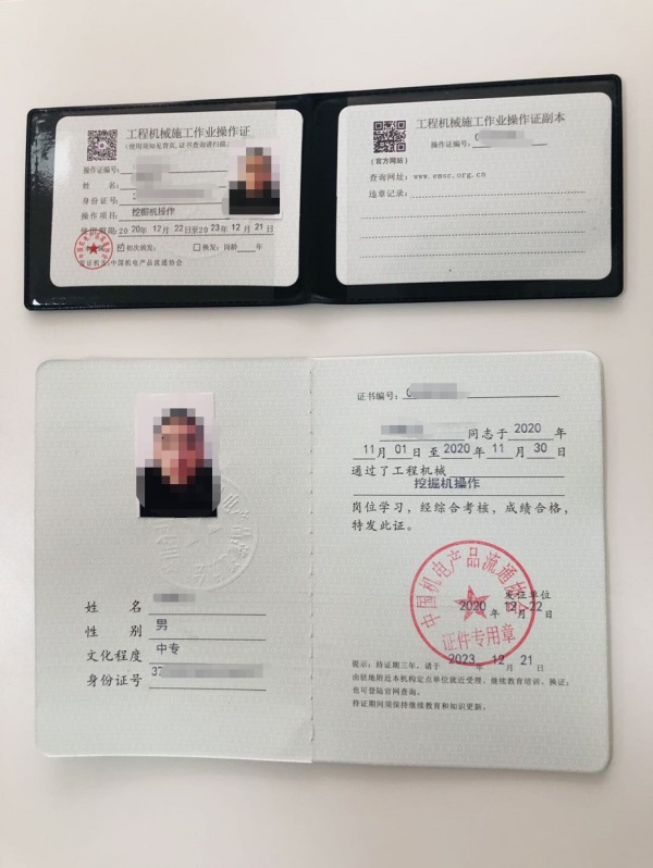 | 建設(shè)工程機械施工節(jié)能作業(yè)操作證 | 挖掘機操作員 | 建設(shè)工程機械委員會 | 2寸電子版照片1張,身份證和學(xué)歷證復(fù)印件1張 |