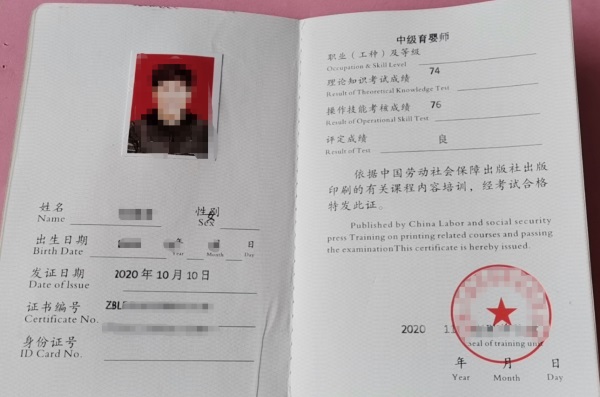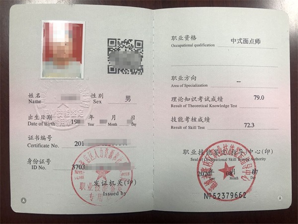 職業(yè)資格證書(中式烹調(diào)師、西點師、面點師中級、高級、技師)