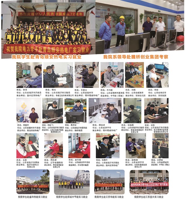 近年來山東煤炭技師學(xué)院電力工程系依托辦學(xué)優(yōu)勢,適應(yīng)市場發(fā)展的需求,大力加強新能源科學(xué)與工程、火電廠熱力設(shè)備運行與檢修、火電廠集控運行、發(fā)電廠及變電站電氣設(shè)備安裝與檢修、供用電技術(shù)、生物制藥、幼兒教育、計算機網(wǎng)絡(luò)應(yīng)用、電子商務(wù)、新能源汽車、人工智能、工業(yè)機器人等方向的專業(yè)建設(shè),簽訂校企合作協(xié)議。大力推進電力“新型學(xué)徒制”教學(xué)精品班,深化工學(xué)一體化教學(xué)。秉承校企合作、高薪就業(yè)、終身服務(wù)的理念,先后與省內(nèi)外央企、國企、地方國企、大型民營企業(yè)等110余家知名企業(yè)(中國節(jié)能集團、青島電廠、日照電廠、海信集團、川能集團、世界五百強魏橋集團、京東集團、格力集團等),簽訂了合作培養(yǎng)協(xié)議建立良好的培訓(xùn)就業(yè)關(guān)系,學(xué)生畢業(yè)即就業(yè)。