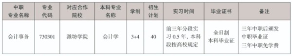①3+4中職與本科貫通培養(yǎng)班面向?yàn)H坊市(含縣市區(qū))應(yīng)屆初中畢業(yè)生;