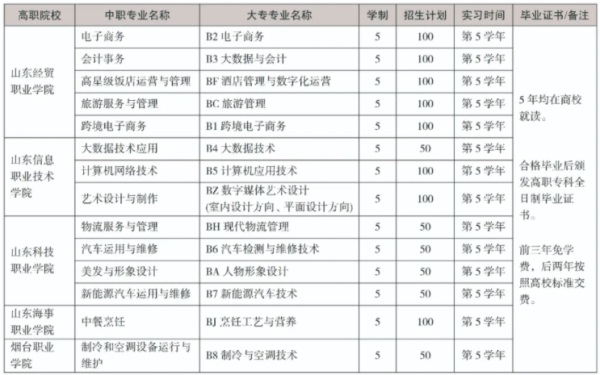 說(shuō)明:2024年,山東省教育廳公布,第一批高水平中職學(xué)校聯(lián)合高職院校舉辦初中后五年制高等職業(yè)教育專業(yè)。