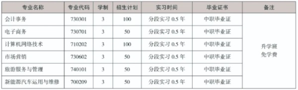 ①3+4中職與本科貫通培養(yǎng)班、五年制高等職業(yè)教育、職教高考班、中職班(可選擇升學(xué)或就業(yè)、留學(xué)方向)3年中職階段免學(xué)費(fèi)。