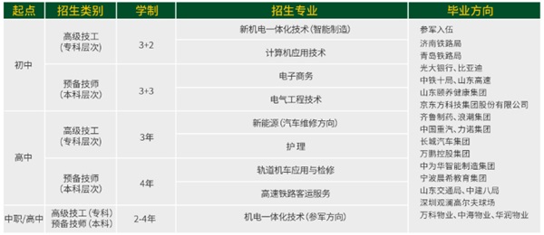 高級(jí)技工(大專層次):招收初中畢業(yè)生,學(xué)制5年(3+2);高中畢業(yè)生學(xué)制3年;中技、中專及以上學(xué)歷畢業(yè)生,學(xué)制2年。