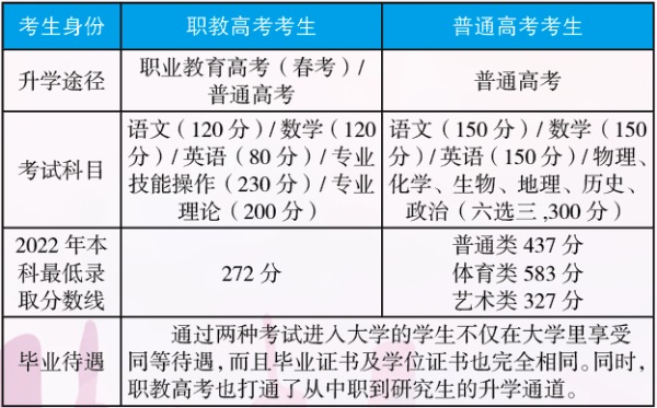 根據(jù)新修訂的《中華人民共和國職業(yè)教育法》,中職學生不僅可以參加職業(yè)教育高考,還可以參加夏季高考。我校主要以體育、美術(shù)兩項專業(yè)特長為主,高中三年課程體系和教學大綱與普通高中完全一致。同時,學習過程中可根據(jù)成績及大學意向?qū)I(yè)自愿由普通高考班轉(zhuǎn)入職教高考班。錄取分數(shù)線參考考生所在區(qū)(縣)中考分數(shù)線。
